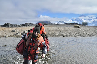 Once we have washed our boots in a chemical to stop contamination, we are free to get out of our boat suits and make our way back to New Bransfield House, where we tag ourselves back into base, then off for a shower before dinner.